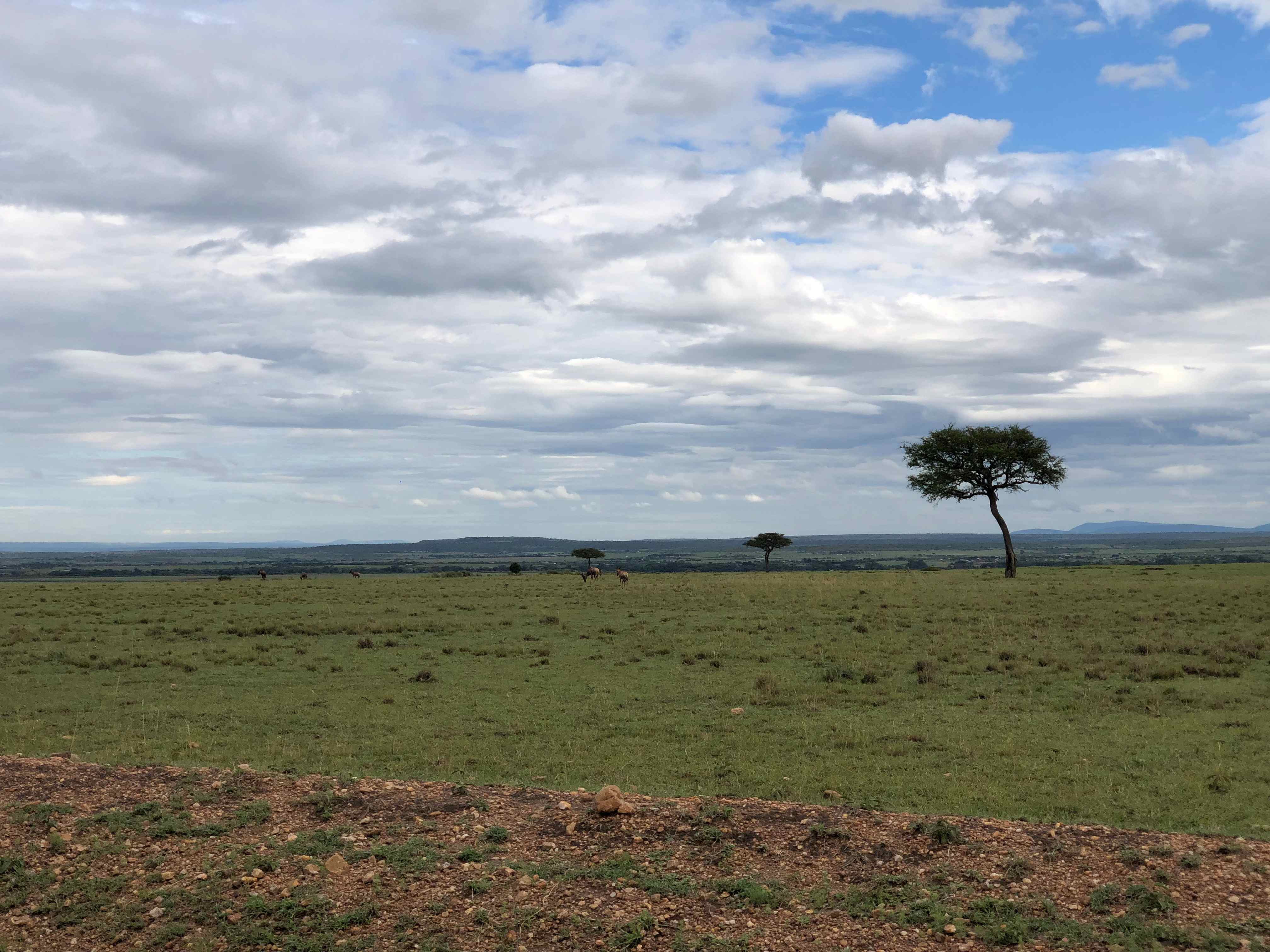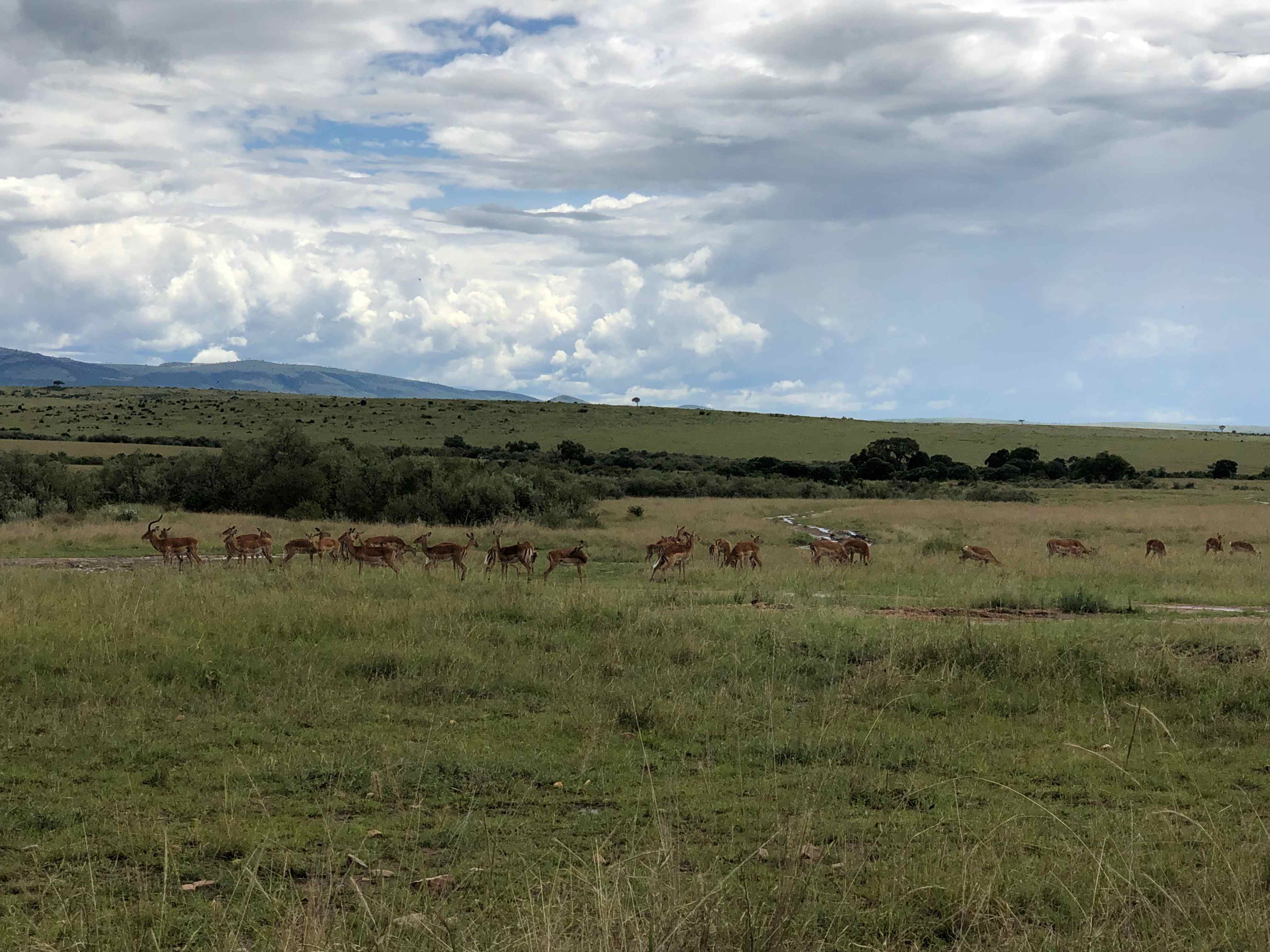 Saison des pluies oblige, Masai Mara est très vert. Une immensité de plaines, de vallons s'offre à nous. Nous voyons à des kilomètres. La chance du débutant est avec nous. Malgré la difficulté de progression avec notre véhicule, non adapté au hors piste. Nous avons aperçu un guépard et ses 4 petits. Beaucoup de zèbres, d'impalas, de topis, de buffles, des lionnes, des lions, des éléphants, des girafes, hyènes, autruches, marabouts, babouins, phacochères et leurs petits ont fait la joie des passionnés de faune.