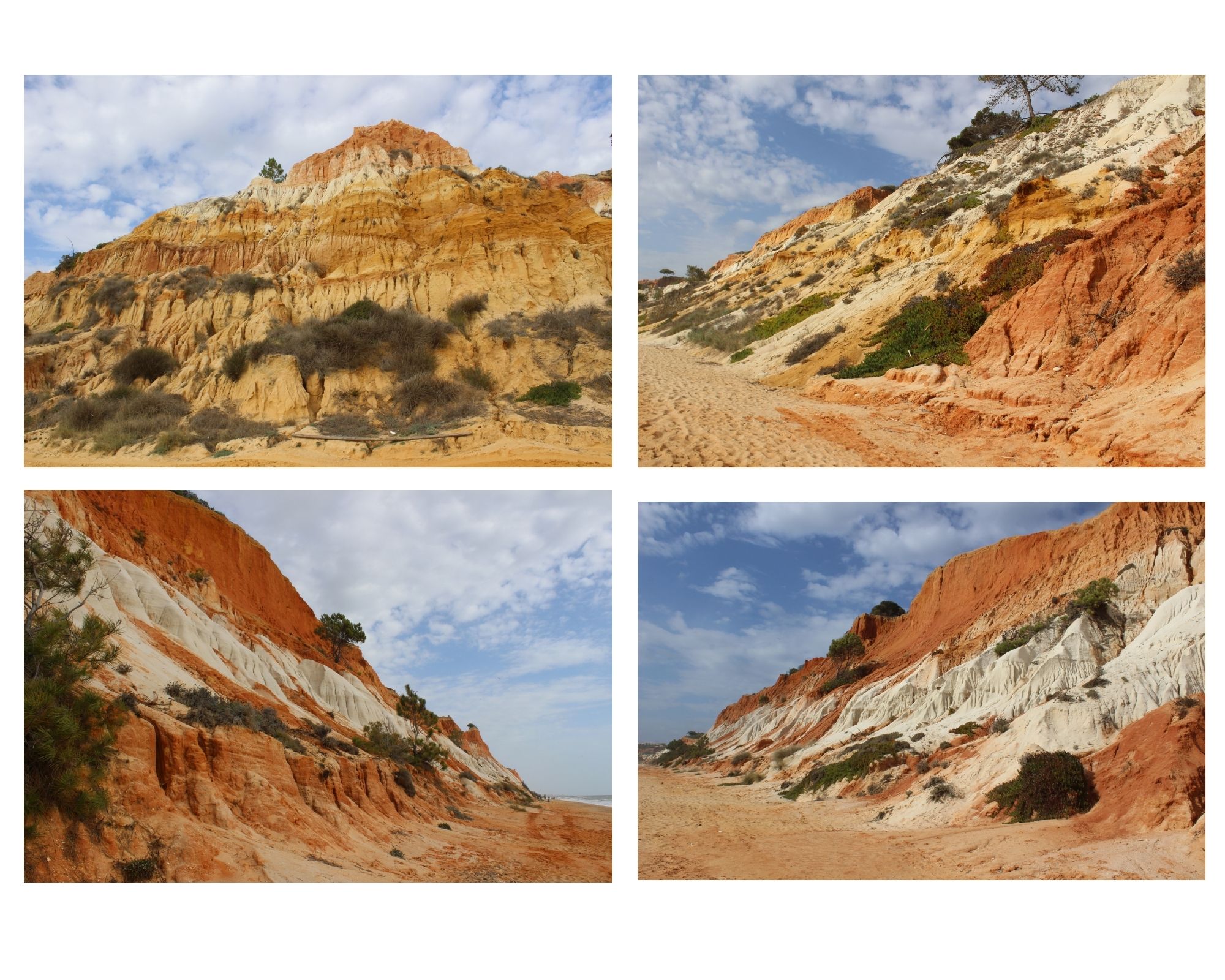 Sous un soleil de plomb, j'arrive à la plage de Monte Clerigo. De très belles vues se découvrent sur les marais, la rivière et la plage d'Amoreira. Partie pour huit kilomètres de randonnée vers la plage de surfeurs d'Arrifana, je suis d'abord la falaise. La balade se poursuit dans une zone de pinède toujours dans le sable. Après la très difficile montée finale, je m'imagine le calvaire estival sous un soleil caniculaire. Je repars à pied par la vallée et la route où ma progression est plus simple. Sur le chemin du retour, j'observe un couple. Elle, tshirt rayé, short à fleurs, baskets multicolores, et sac assorti et son mec, sa petite queue de cheval haute, son téléphone avec perche à selfie et son petit trot pour grimper la route pour aller me déranger sur mon spot où je déjeune tranquille. Plus tard, lorsque je reprends ma route, il se dandine, assis, au bord du précipice pour prendre la photo qui fera baver sur les réseaux sociaux. Peut être sa dernière? lol.