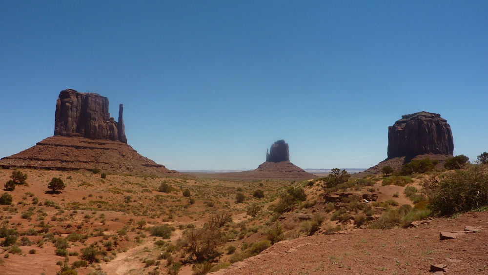 Ça fait quand même son petit effet de le voir en vrai, ce Monument Valley, un lendemain de tempête de sable. Le vent est toujours tourbillonnant, la conduite, un coup dans le sable, un coup dans le caillou. C'est à voir, c'est sûr. C'est cliché, mais, c'est une valeur sûre.